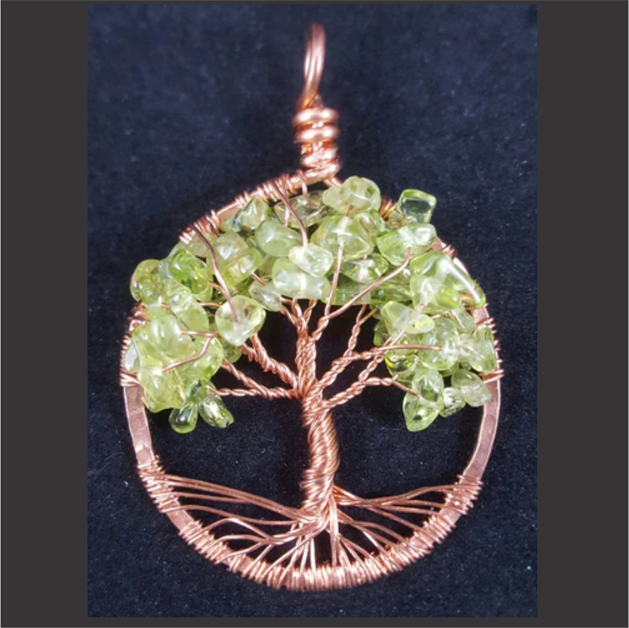 Copper Tree of Life Pendant with Peridot Crystal Chips