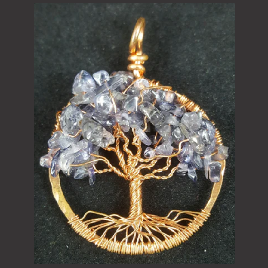 Copper Tree of Life Pendant with Iolite Crystal Chips